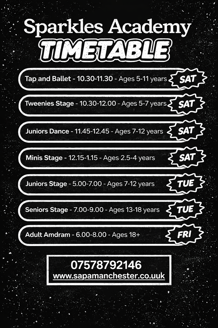 Sparkles Classes run consecutively throughout the year, except for Summer and Christmas Break.